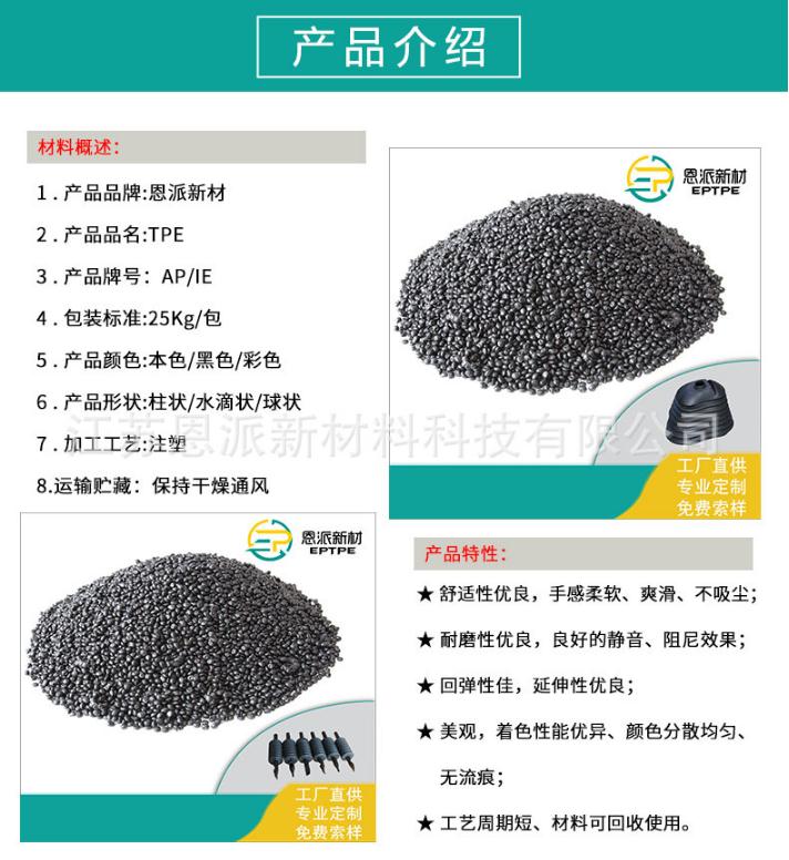 江苏恩派新材料科技有限公司是专注于热塑性弹性体材料领域研究与发展的高新技术企业;是华东地区知名热塑性弹性体材料与解决方案供应商,致力于与塑料及塑料制品商建立长期友好合作关系。