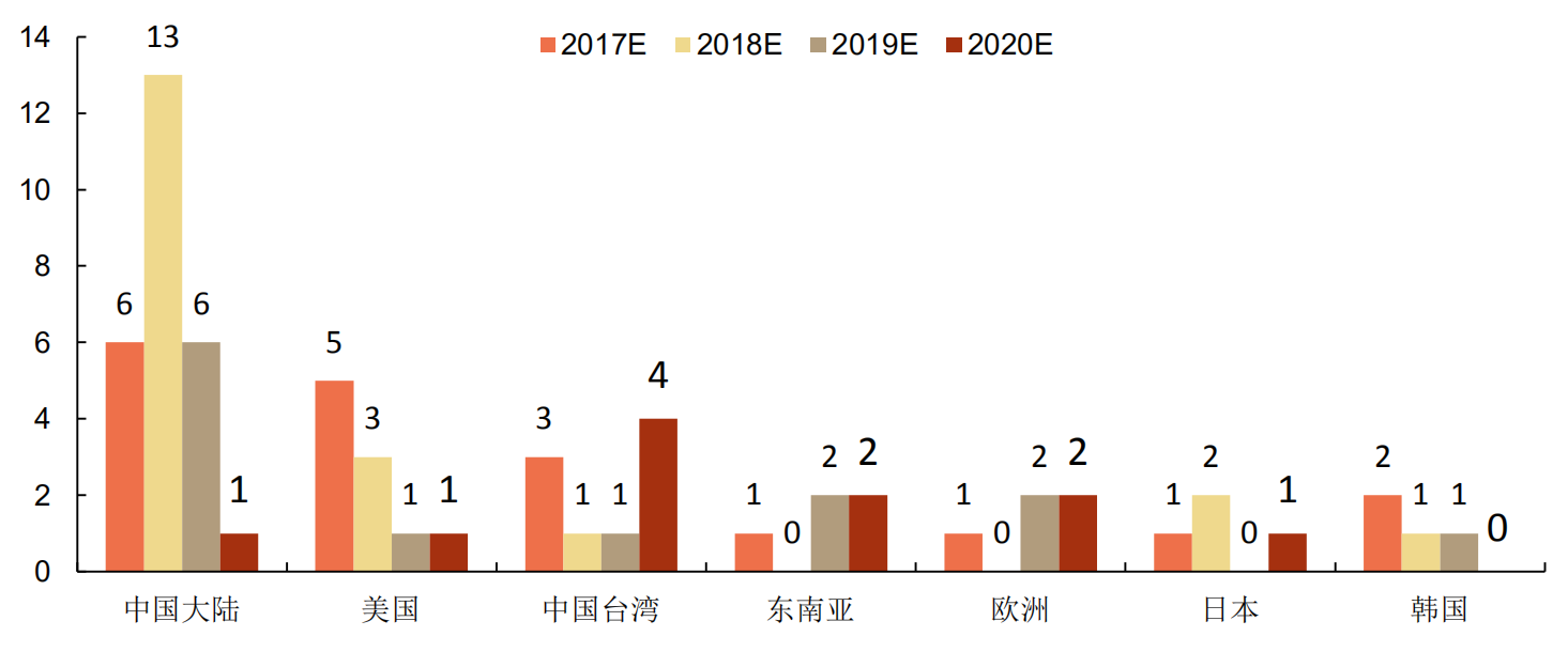在这种趋势下,从2017年开始,国内开始大量投建晶圆厂,据SEMI预估,2017-2020年全球将有62座新晶圆厂投产,其中26座将坐落在中国大陆,超过了市场40%的份额。