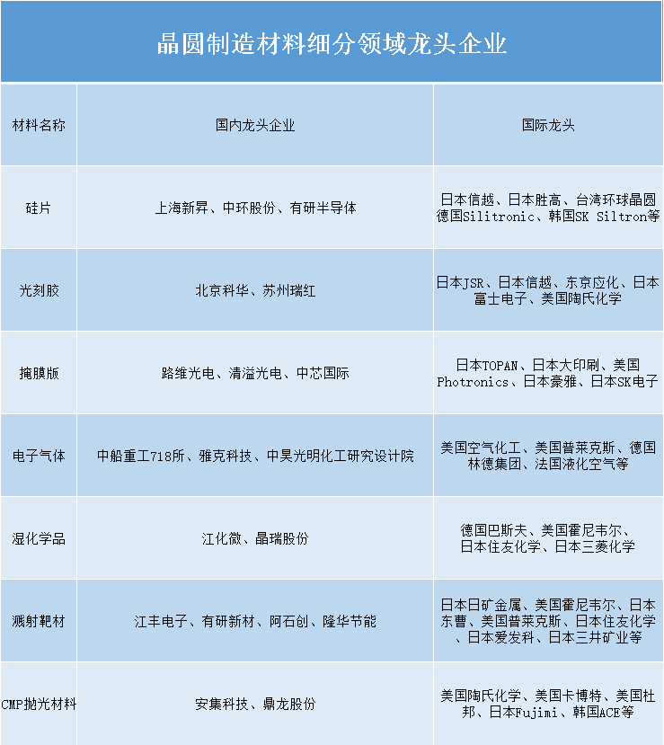国内半导体材料领域的龙头企业有哪些?