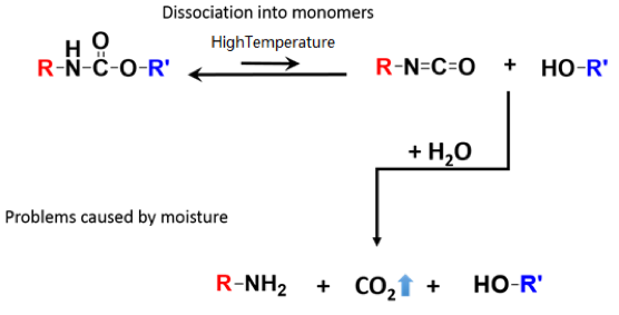 水分的出现会加速分解反应;如图3所示的反应会导致聚合物链分解成胺和二氧化碳。医疗级TPU由于不添加耐水解剂以及在抗氧剂种类和数量上的限制,这一反应过程尤为突出。